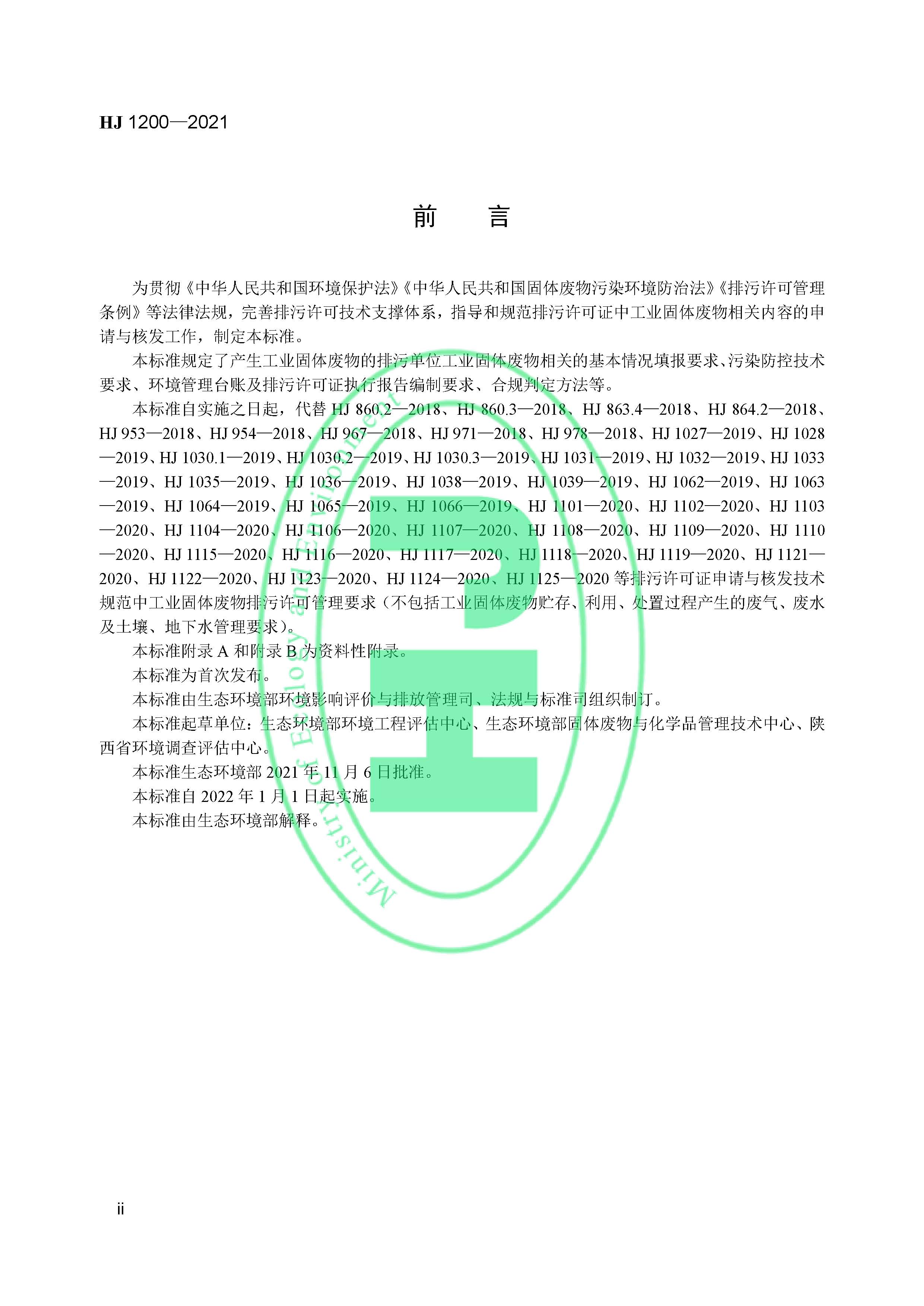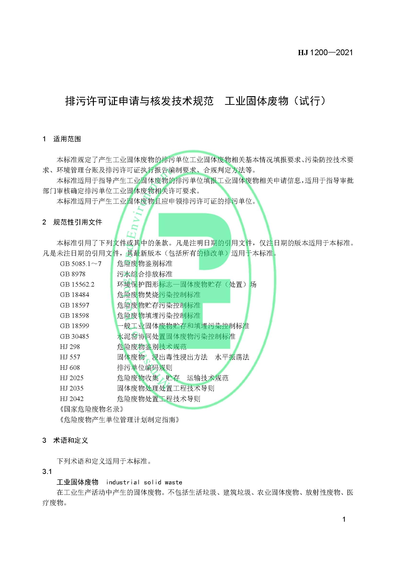 為貫徹《中華人民共和國環(huán)境保護法》《中華人民共和國固體廢物污染環(huán)境防治法》《排污許可管理條例》等法律法規(guī),完善排污許可技術支撐體系,指導和規(guī)范排污許可證中工業(yè)固體廢物相關內容的申請與核發(fā)工作,制定本標準。本標準規(guī)定了產生工業(yè)固體廢物的排污單位工業(yè)固體廢物相關的基本情況填報要求、污染防控技術要求、環(huán)境管理臺賬及排污許可證執(zhí)行報告編制要求、合規(guī)判定方法等。本標準為首次發(fā)布。