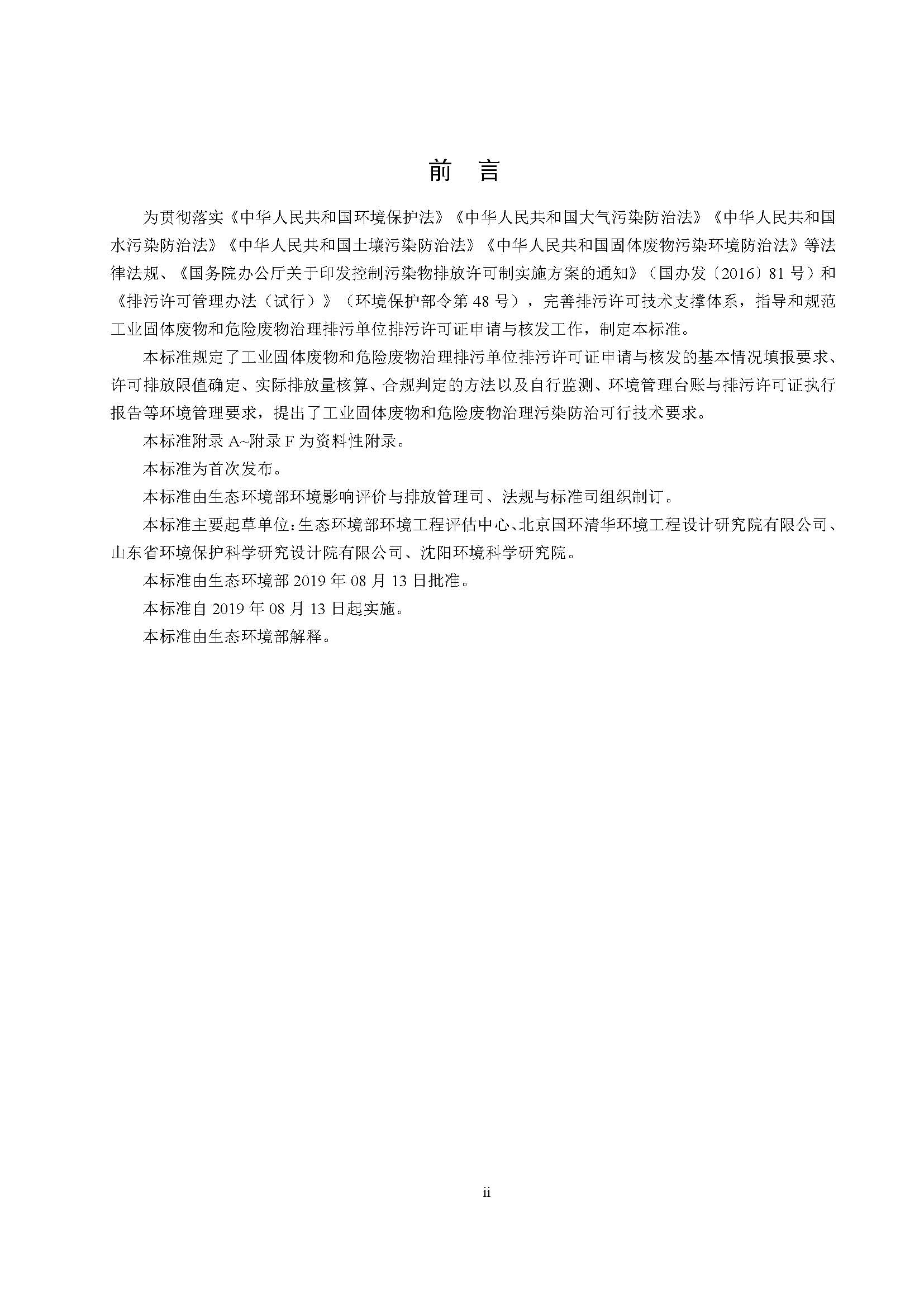 為貫徹《中華人民共和國(guó)環(huán)境保護(hù)法》《中華人民共和國(guó)固體廢物污染環(huán)境防治法》《排污許可管理?xiàng)l例》等法律法規(guī),完善排污許可技術(shù)支撐體系,指導(dǎo)和規(guī)范排污許可證中工業(yè)固體廢物相關(guān)內(nèi)容的申請(qǐng)與核發(fā)工作,制定本標(biāo)準(zhǔn)。本標(biāo)準(zhǔn)規(guī)定了產(chǎn)生工業(yè)固體廢物的排污單位工業(yè)固體廢物相關(guān)的基本情況填報(bào)要求、污染防控技術(shù)要求、環(huán)境管理臺(tái)賬及排污許可證執(zhí)行報(bào)告編制要求、合規(guī)判定方法等。本標(biāo)準(zhǔn)為首次發(fā)布。
