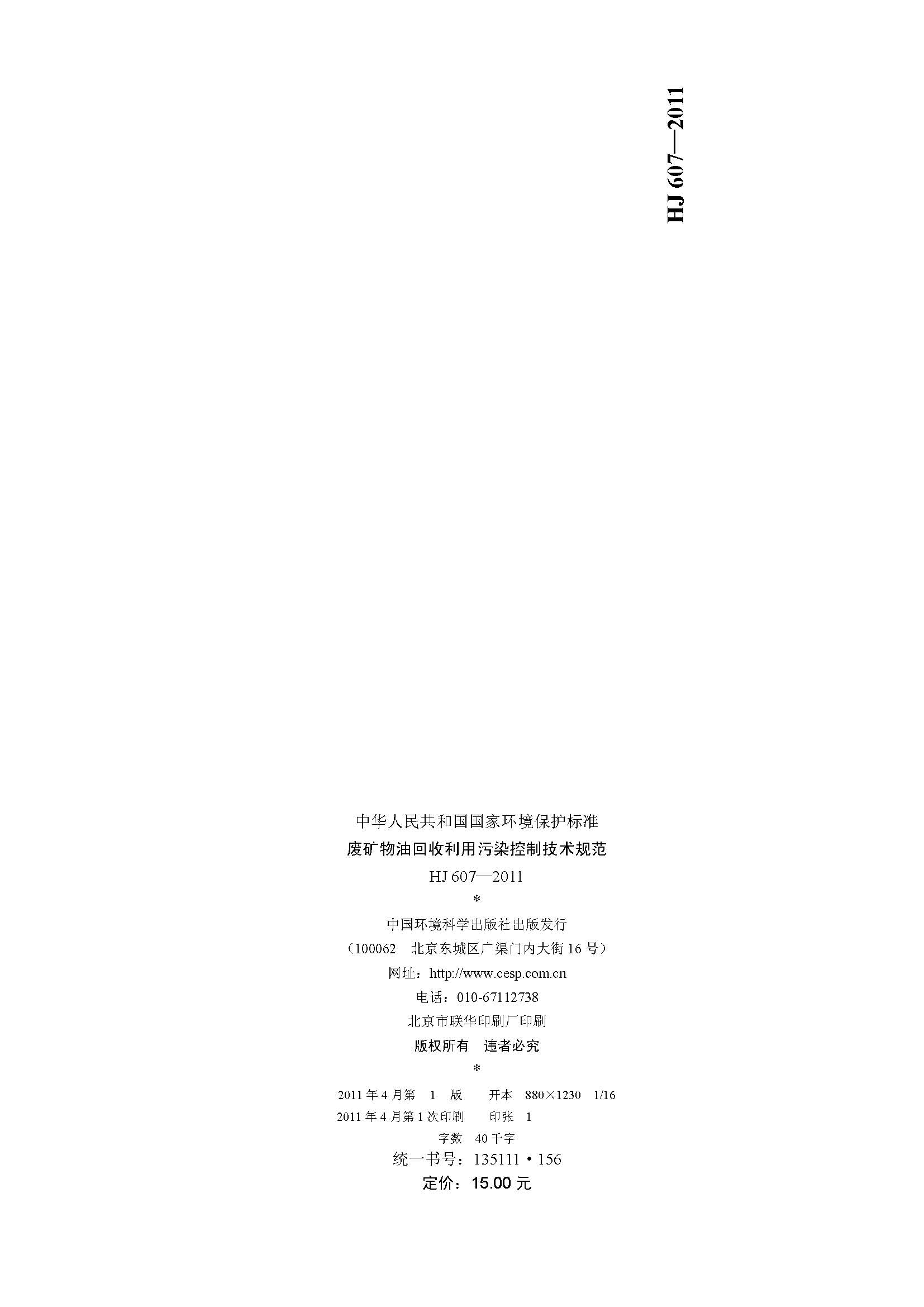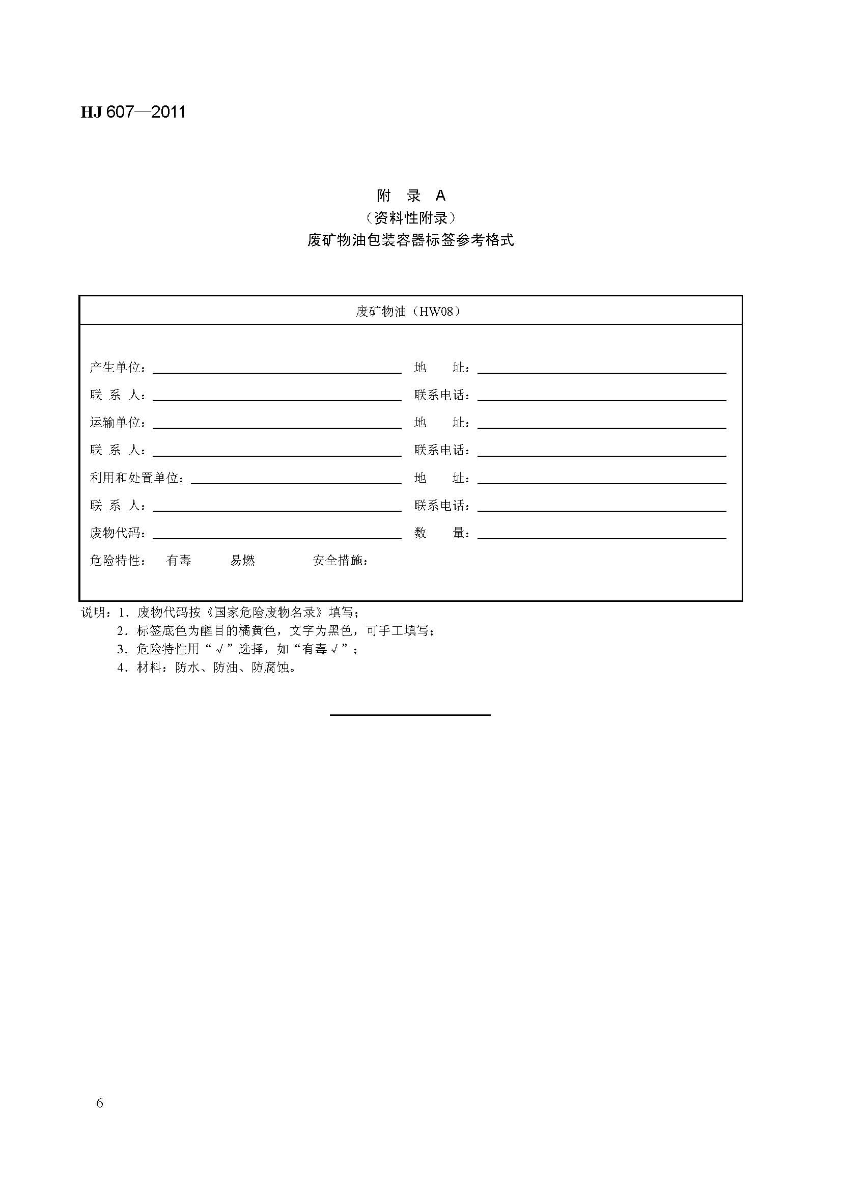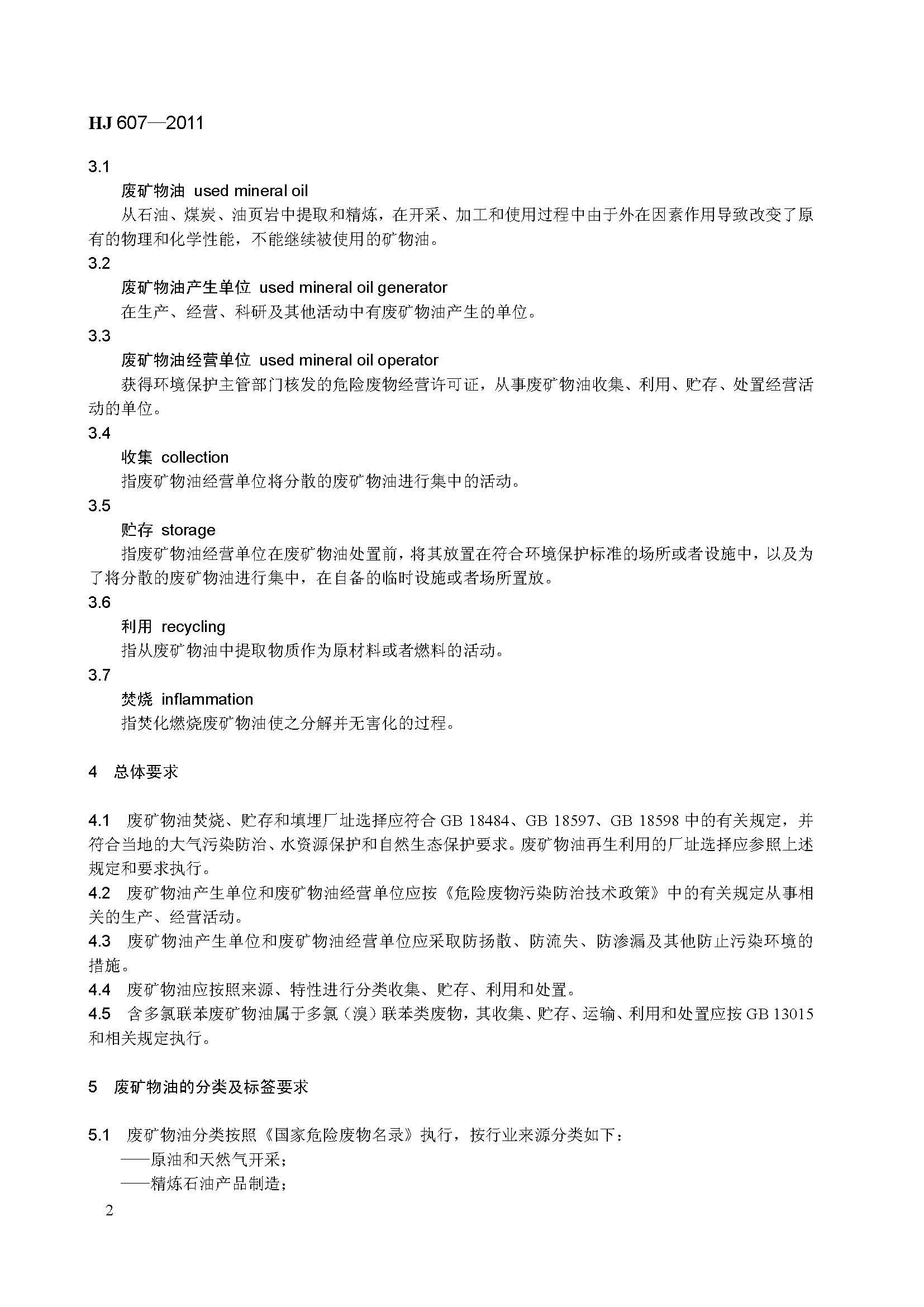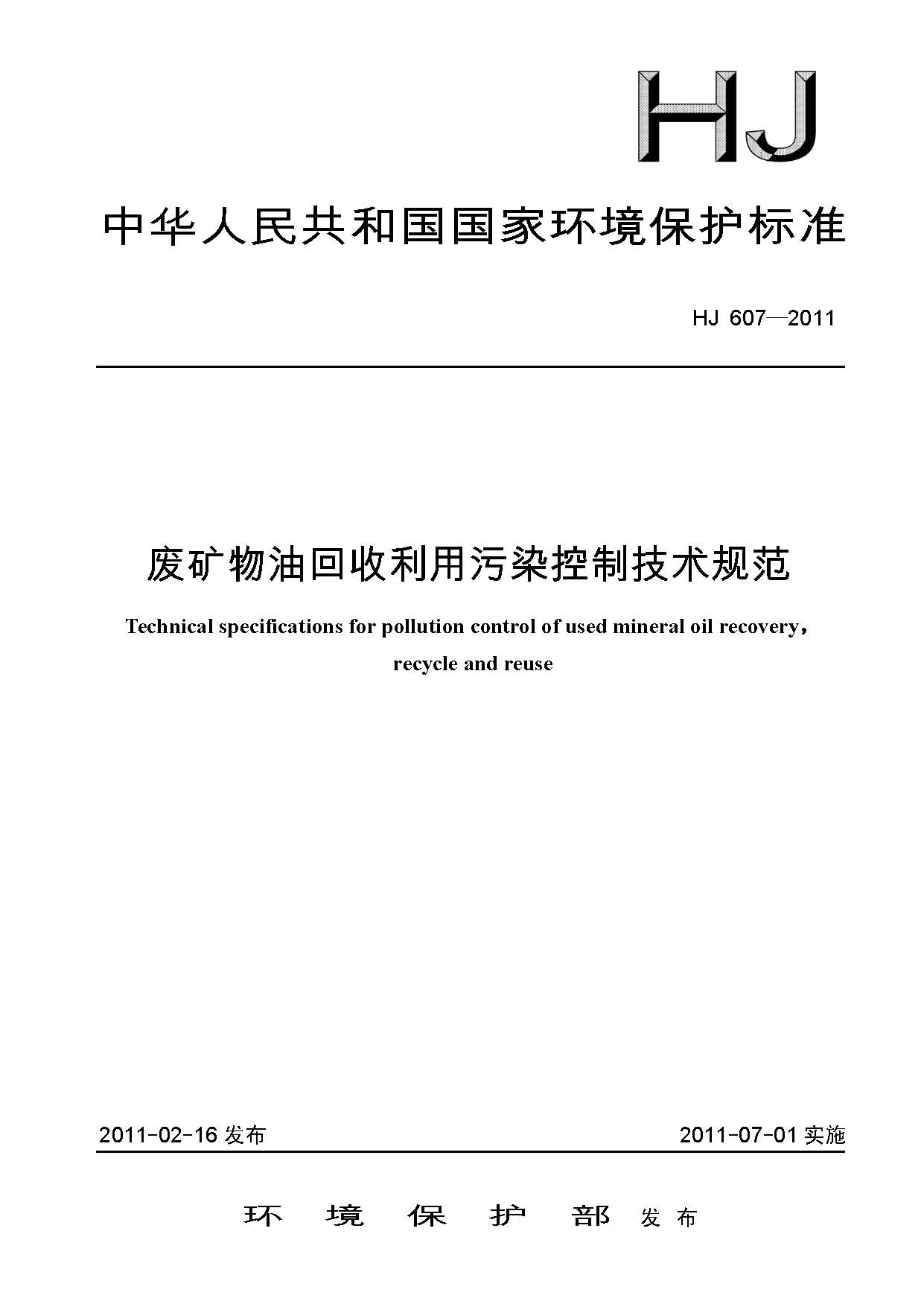 為貫徹《中華人民共和國環(huán)境保護(hù)法》、《中華人民共和國固體廢物污染環(huán)境防治法》,規(guī)范廢礦物油回收利用、處置行為,防治廢礦物油對環(huán)境的污染,保護(hù)環(huán)境,保障人體健康,制定本標(biāo)準(zhǔn)。本標(biāo)準(zhǔn)規(guī)定了廢礦物油收集、運輸、貯存、利用和處置過程中的污染控制技術(shù)及環(huán)境管理要求。本標(biāo)準(zhǔn)適用于廢礦物油收集、貯存、運輸、利用和處置過程的污染控制,可用于指導(dǎo)廢礦物油經(jīng)營單位建廠選址、工程建設(shè)以及建成后工程運營的污染控制工作。本標(biāo)準(zhǔn)為首次發(fā)布。