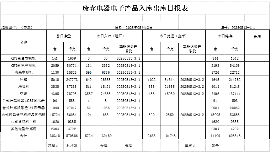 2025.05.13回收拆解統(tǒng)計(jì)表