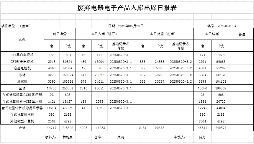 2025.05.20回收拆解統(tǒng)計(jì)表