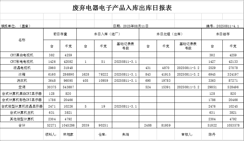 2025.08.11回收拆解統(tǒng)計(jì)表