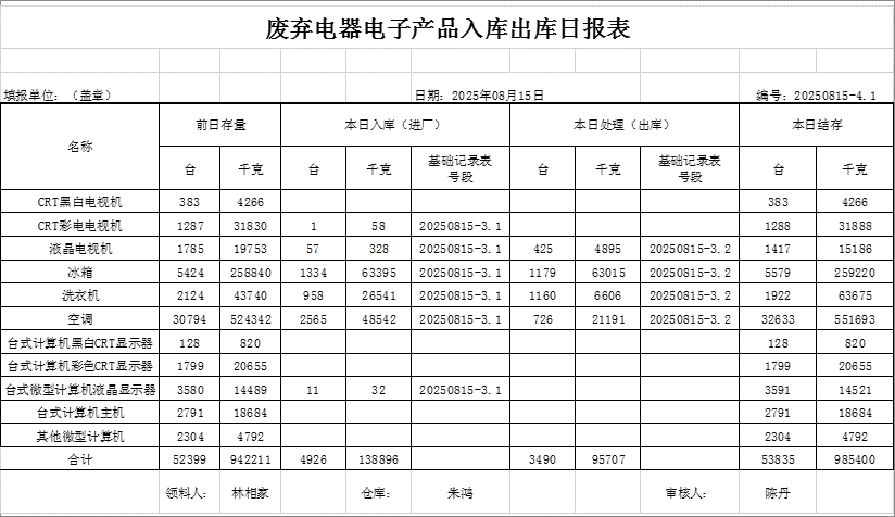 2025.08.15回收拆解統(tǒng)計(jì)表