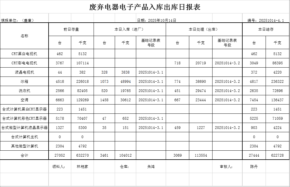 2025.10.14回收拆解統(tǒng)計(jì)表