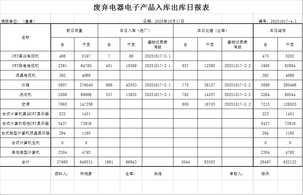 2025.10.17回收拆解統(tǒng)計(jì)表