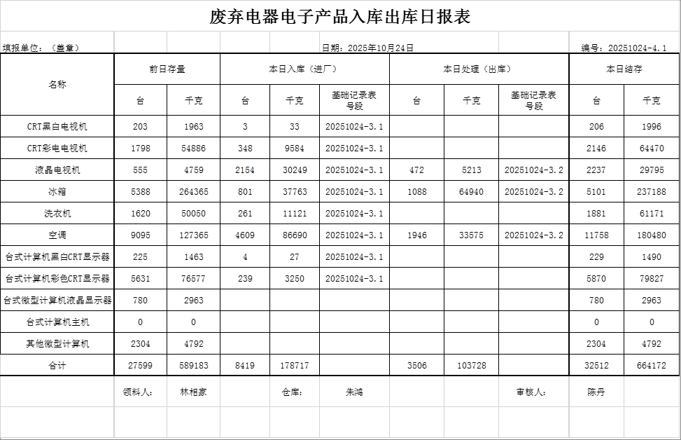 2025.10.24回收拆解統(tǒng)計(jì)表