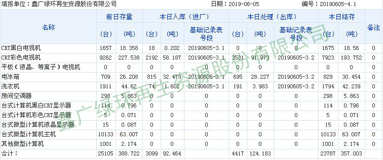2019.06.04回收拆解統(tǒng)計(jì)表