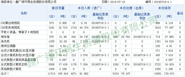 2019.07.19回收拆解統(tǒng)計(jì)表
