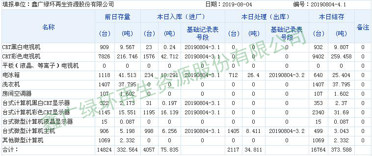 2019.08.04回收拆解統(tǒng)計(jì)表