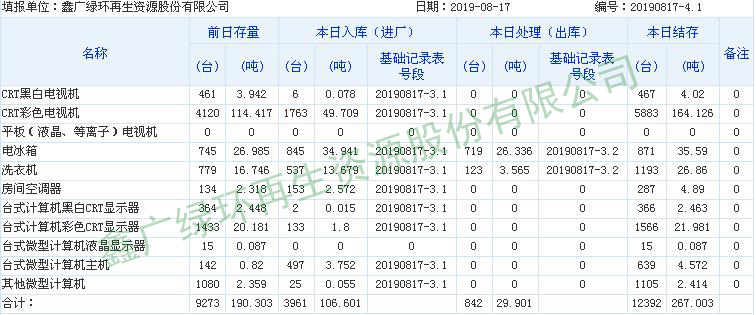 2019.08.17回收拆解統(tǒng)計(jì)表