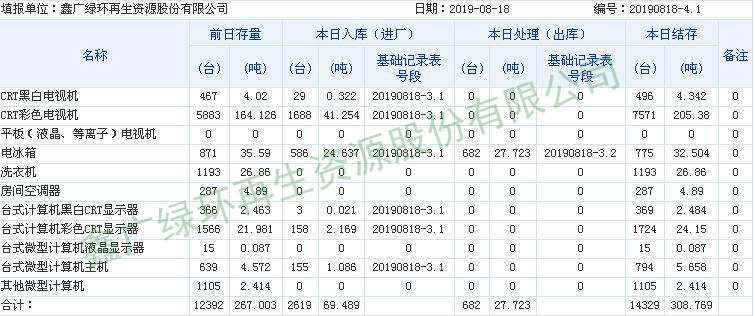 2019.08.18回收拆解統(tǒng)計(jì)表