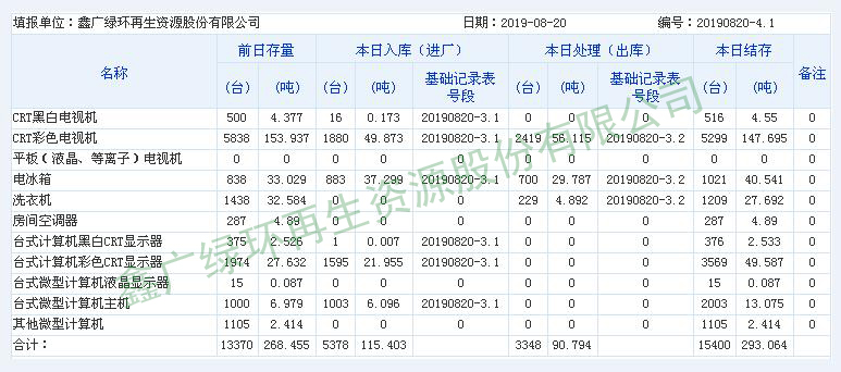 2019.08.19回收拆解統(tǒng)計表