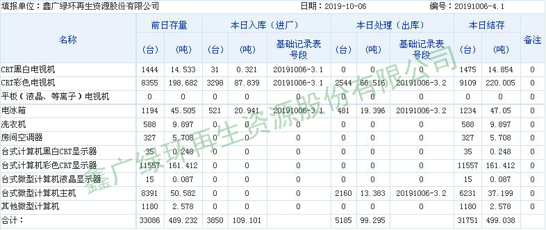 2019.10.06回收拆解統(tǒng)計(jì)表