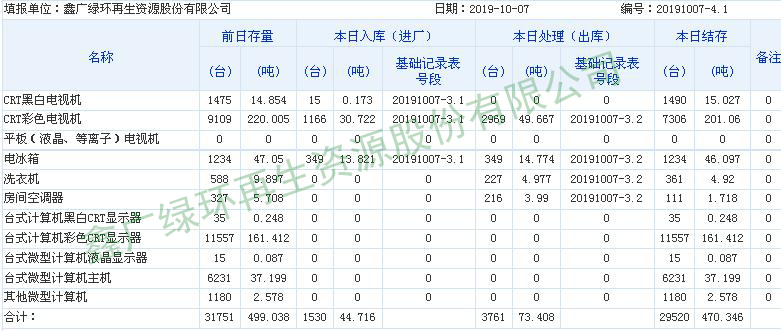 2019.10.07回收拆解統(tǒng)計表