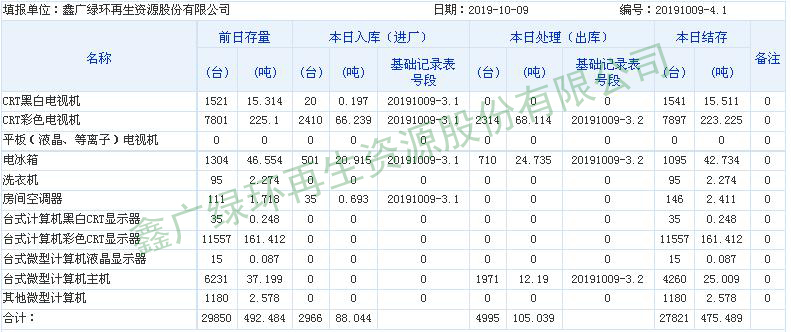 2019.10.09回收拆解統(tǒng)計(jì)表