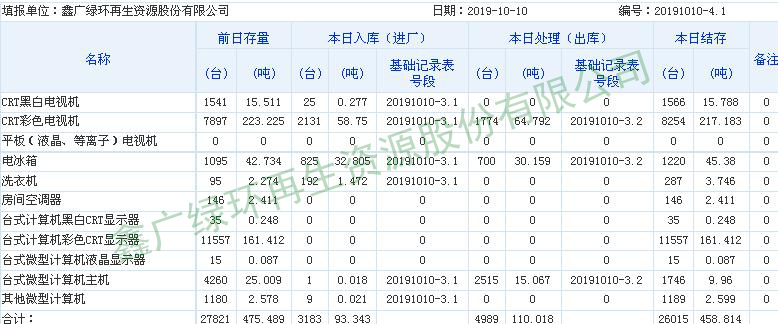 2019.10.11回收拆解統(tǒng)計(jì)表