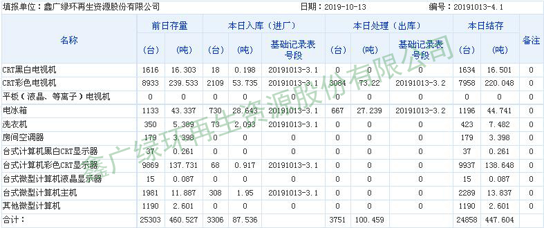 2019.10.13回收拆解統(tǒng)計(jì)表