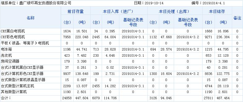 2019.10.14回收拆解統(tǒng)計表