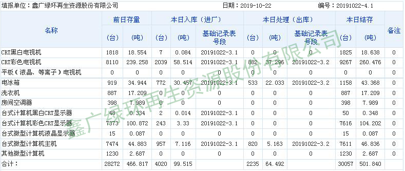 2019.10.22回收拆解統(tǒng)計(jì)表