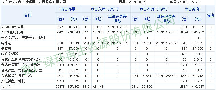 2019.10.25回收拆解統(tǒng)計(jì)表