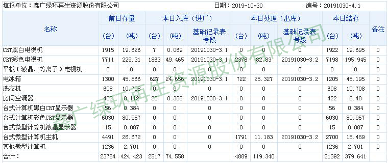 2019.10.30回收拆解統(tǒng)計表