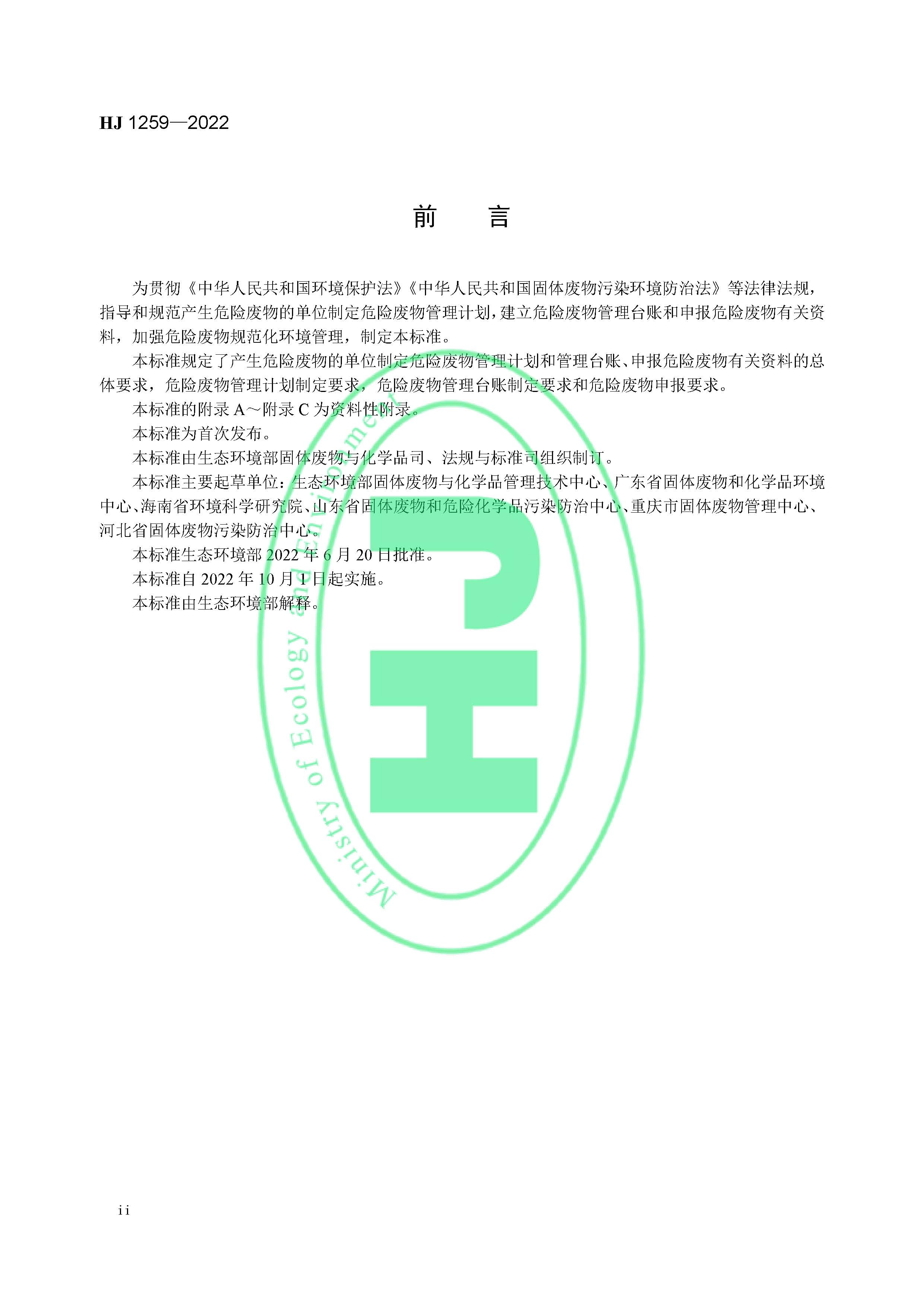 為貫徹《中華人民共和國環(huán)境保護(hù)法》《中華人民共和國固體廢物污染環(huán)境防治法》等法律法規(guī),指導(dǎo)和規(guī)范產(chǎn)生危險廢物的單位制定危險廢物管理計劃,建立危險廢物管理臺賬和申報危險廢物有關(guān)資料,加強(qiáng)危險廢物規(guī)范化環(huán)境管理,制定本標(biāo)準(zhǔn)。本標(biāo)準(zhǔn)規(guī)定了產(chǎn)生危險廢物的單位制定危險廢物管理計劃和管理臺賬、申報危險廢物有關(guān)資料的總體要求,危險廢物管理計劃制定要求,危險廢物管理臺賬制定要求和危險廢物申報要求。本標(biāo)準(zhǔn)的附錄 A~附錄 C 為資料性附錄。本標(biāo)準(zhǔn)為首次發(fā)布。