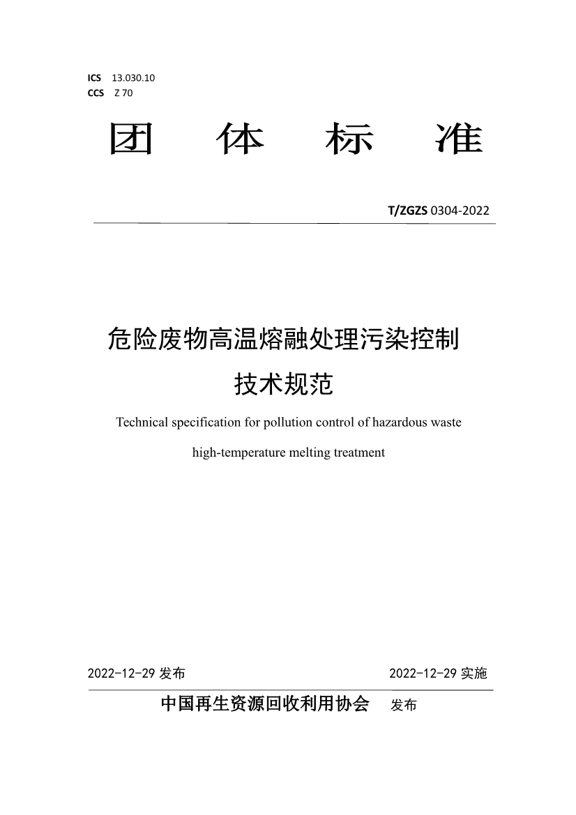 中國再生資源回收利用協(xié)會(huì)發(fā)布團(tuán)體標(biāo)準(zhǔn)《危險(xiǎn)廢物高溫熔融處理污染控制技術(shù)規(guī)范》,自發(fā)布之日起實(shí)施。詳情如下: