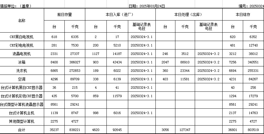 2025.03.24回收拆解統(tǒng)計(jì)表