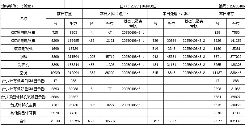 2025.04.06回收拆解統(tǒng)計(jì)表