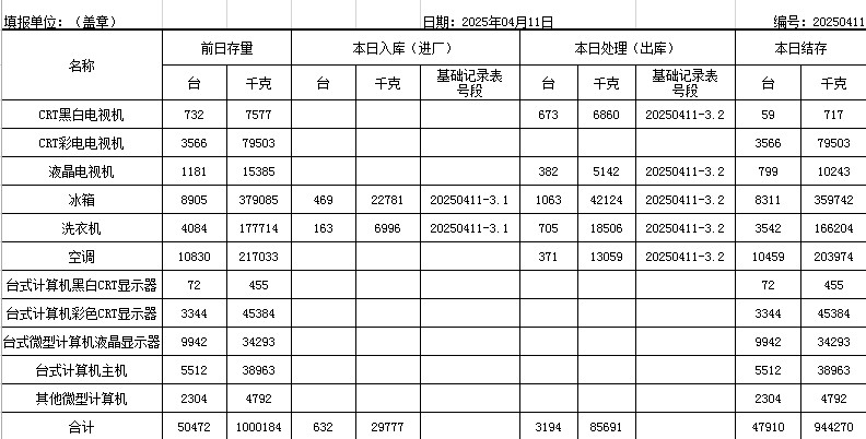 2025.04.11回收拆解統(tǒng)計(jì)表