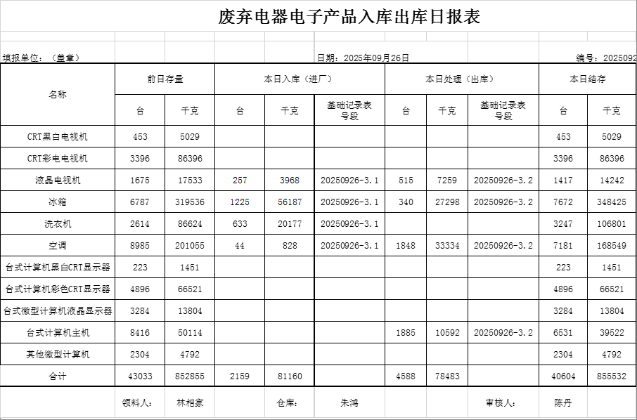 2025.09.26回收拆解統(tǒng)計(jì)表