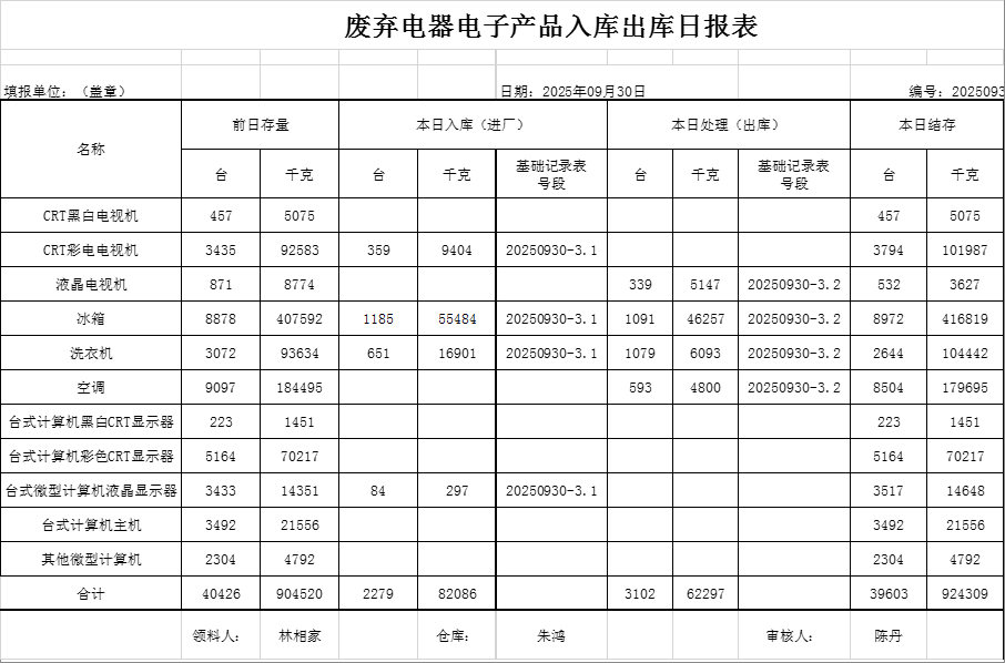 2025.09.30回收拆解統(tǒng)計表