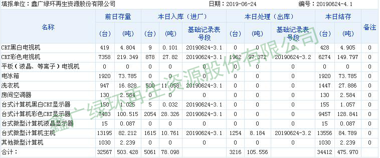2019.06.24回收拆解統(tǒng)計(jì)表