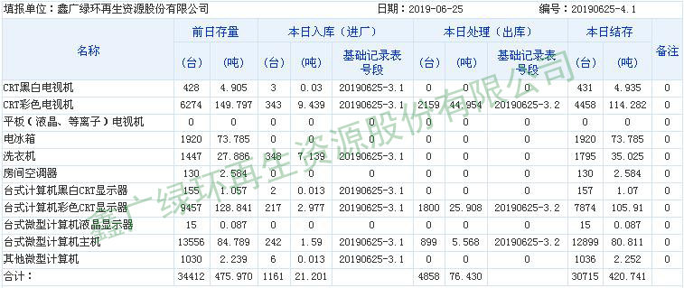 2019.06.25回收拆解統(tǒng)計(jì)表