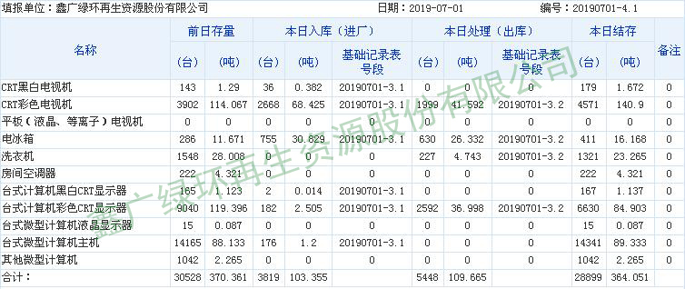 2019.07.01回收拆解統(tǒng)計(jì)表